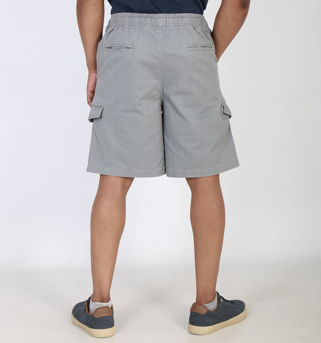 CRACKER POPLIN ELASTICATED CARGO SHORTS - LIGHT GREY