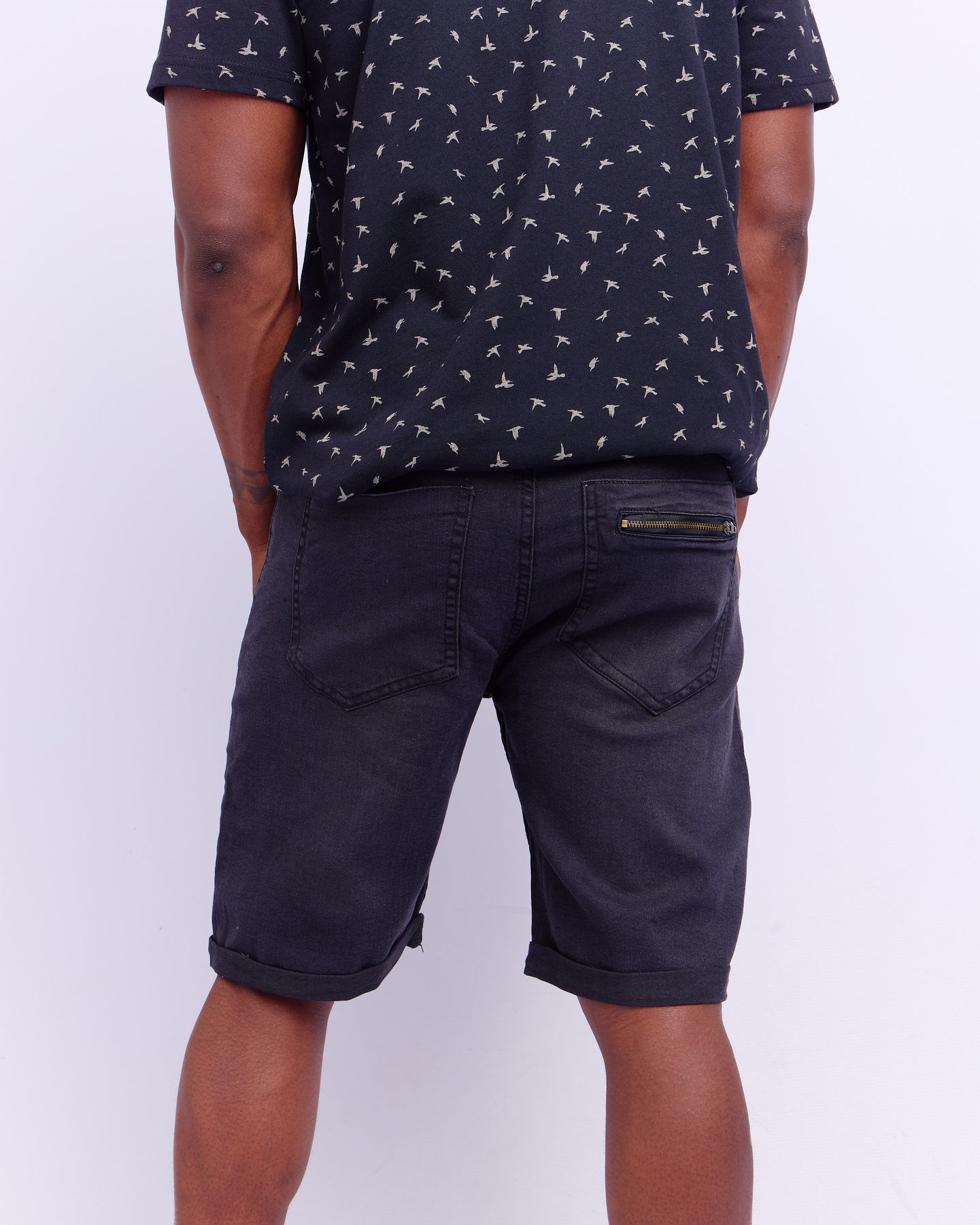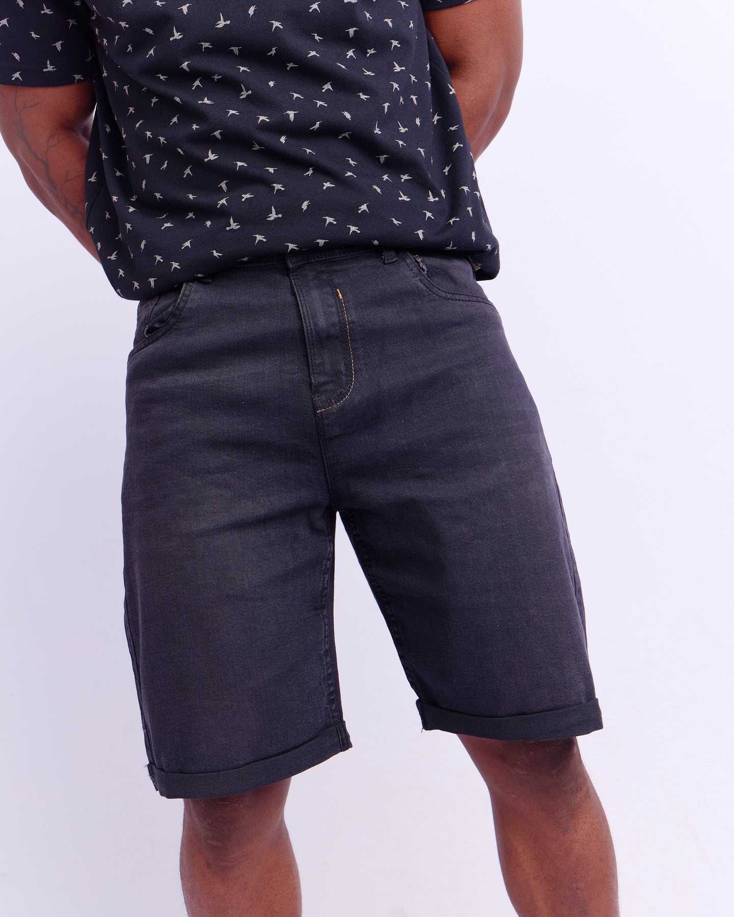 5PKT SLIM LEG DENIM SHORTS - BLACK