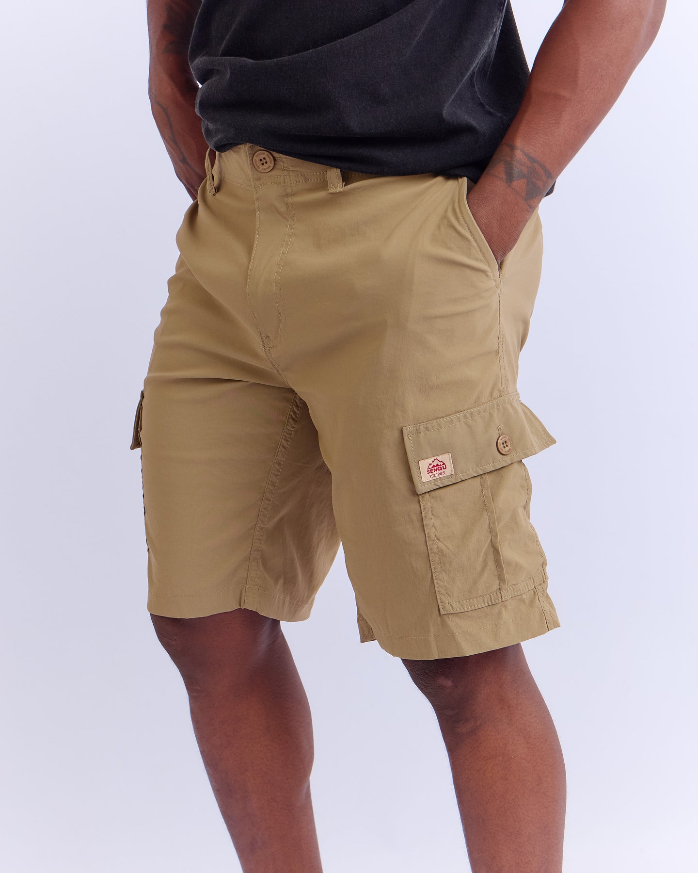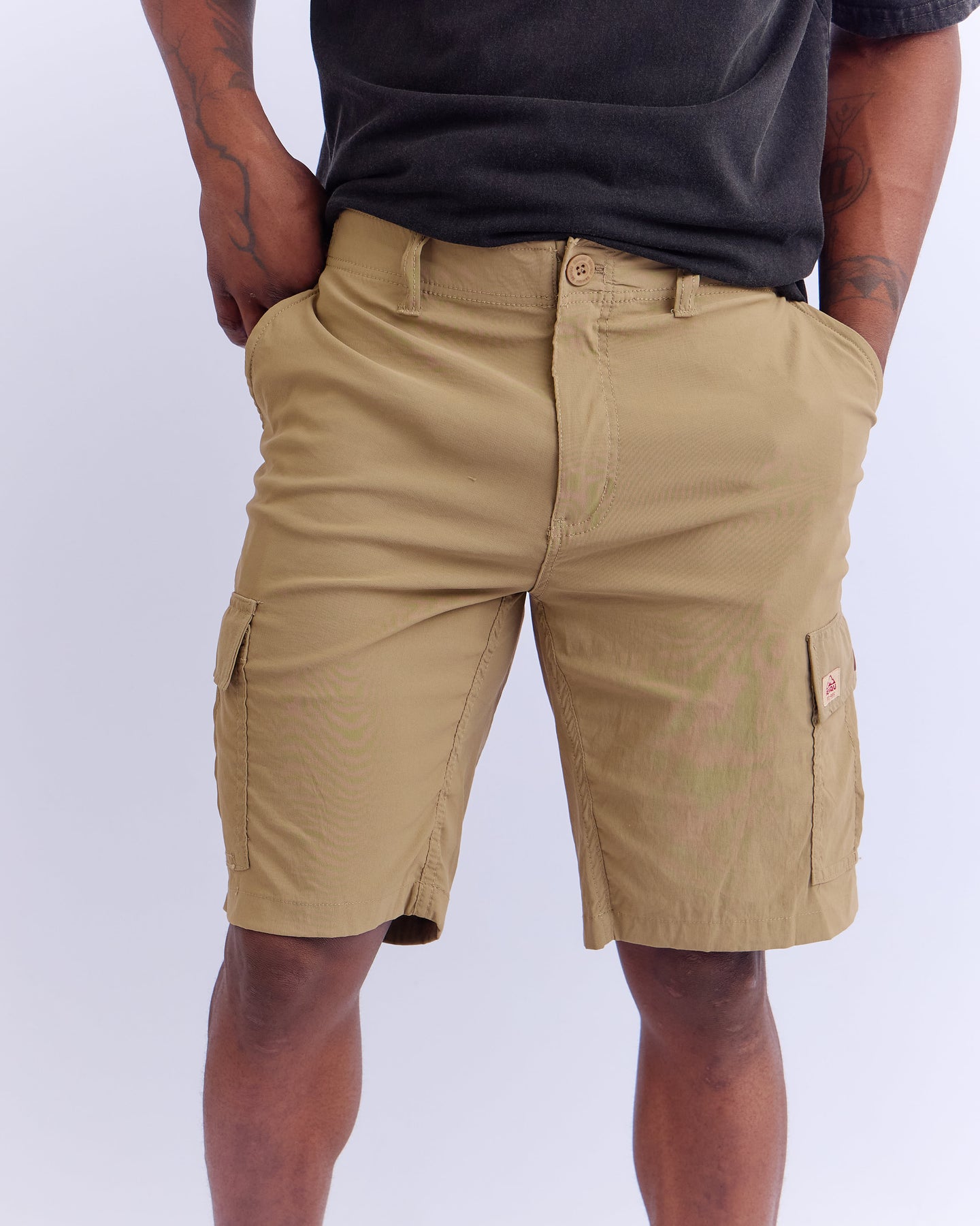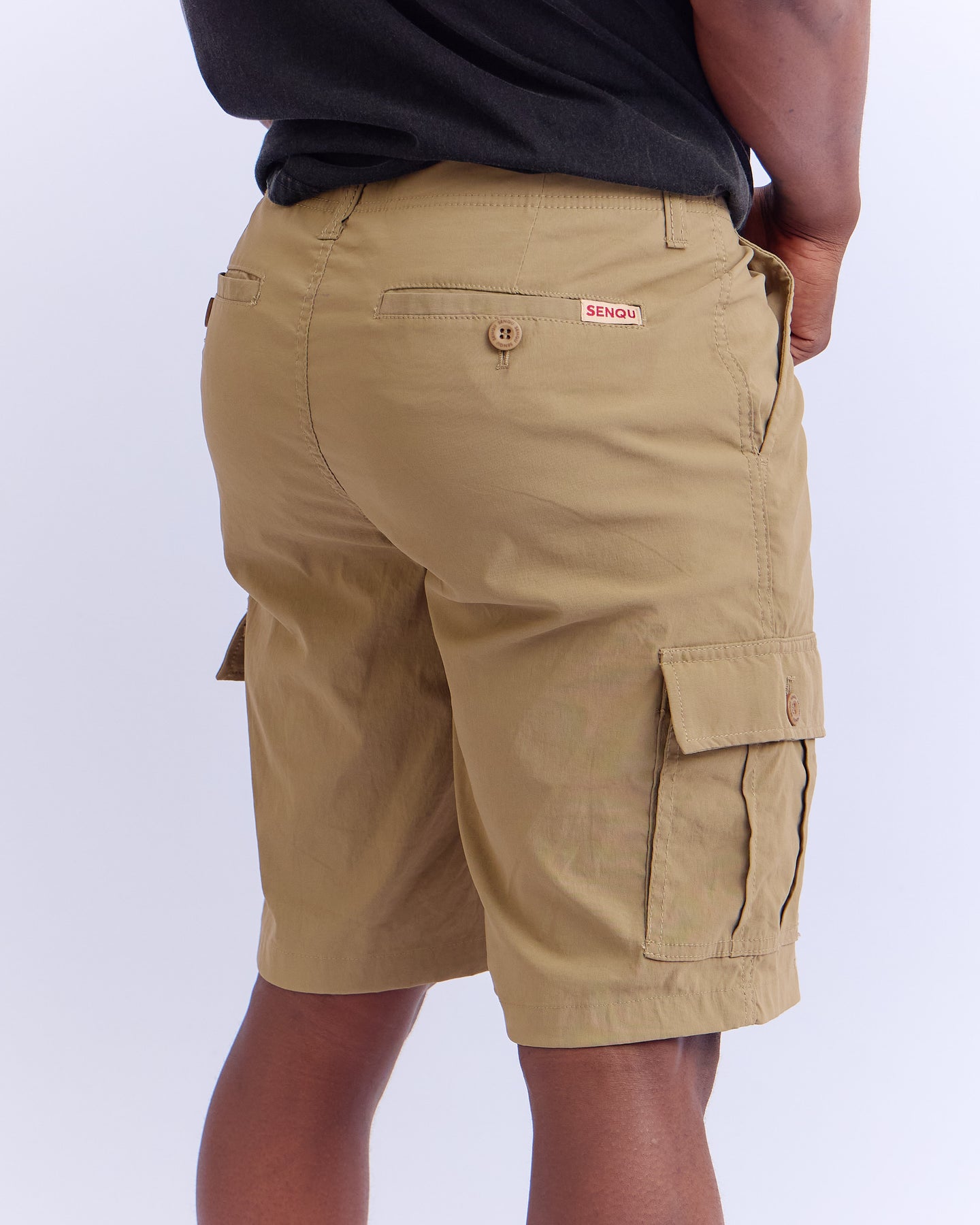 SENQU ELASTICATED CARGO SHORTS - KHAKI