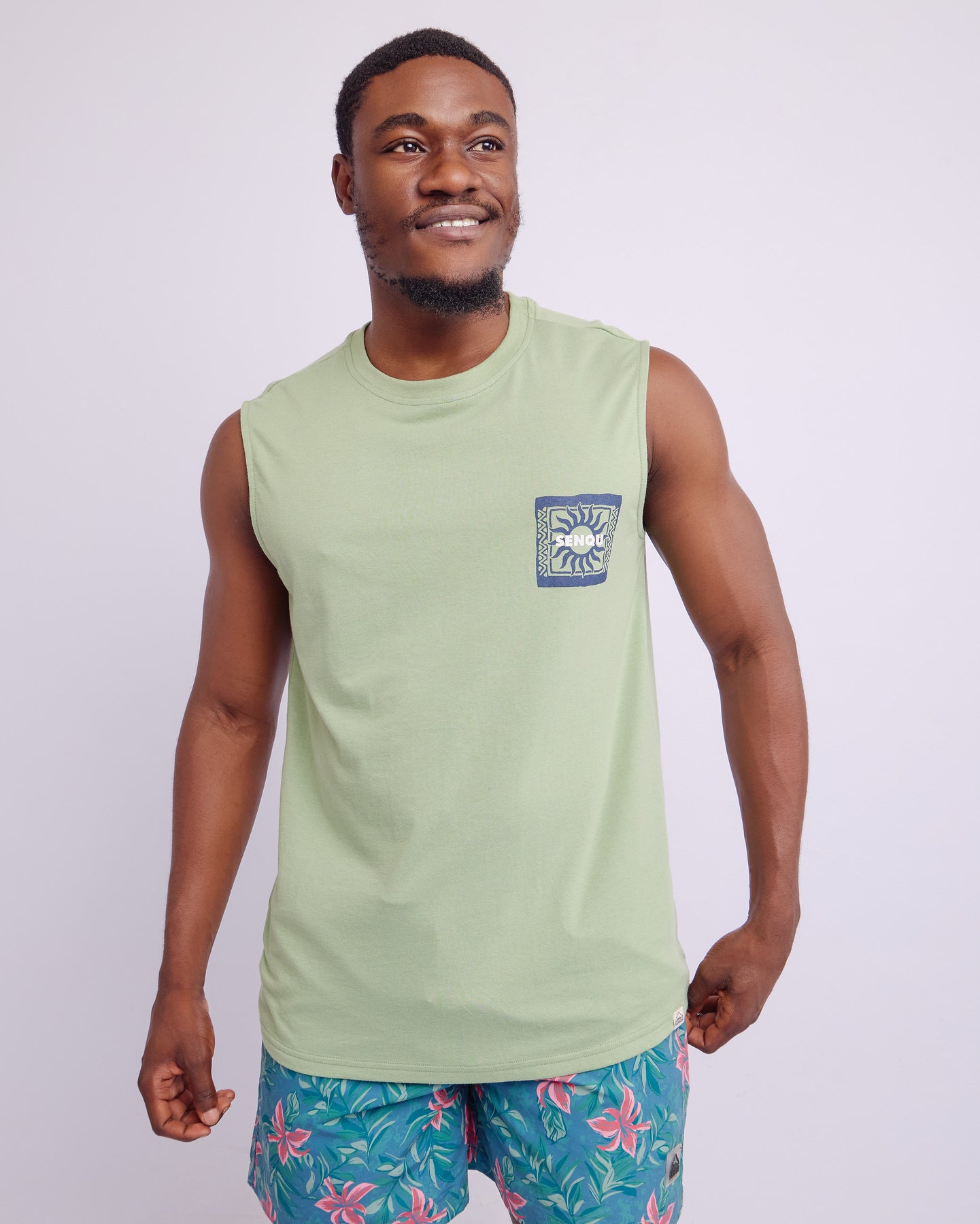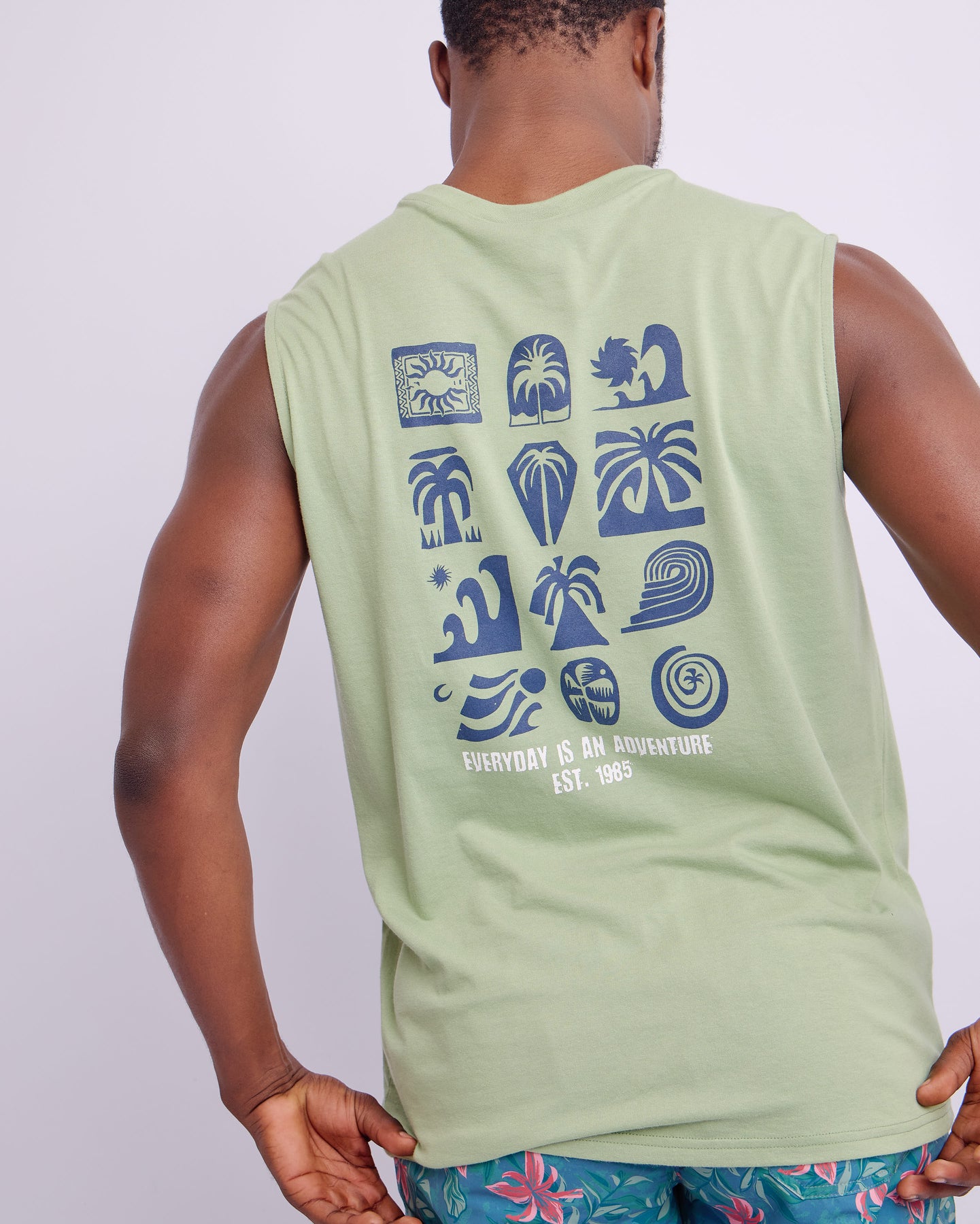 BEACH & SUN CHEST & BACK PRINTED VEST - BASIL