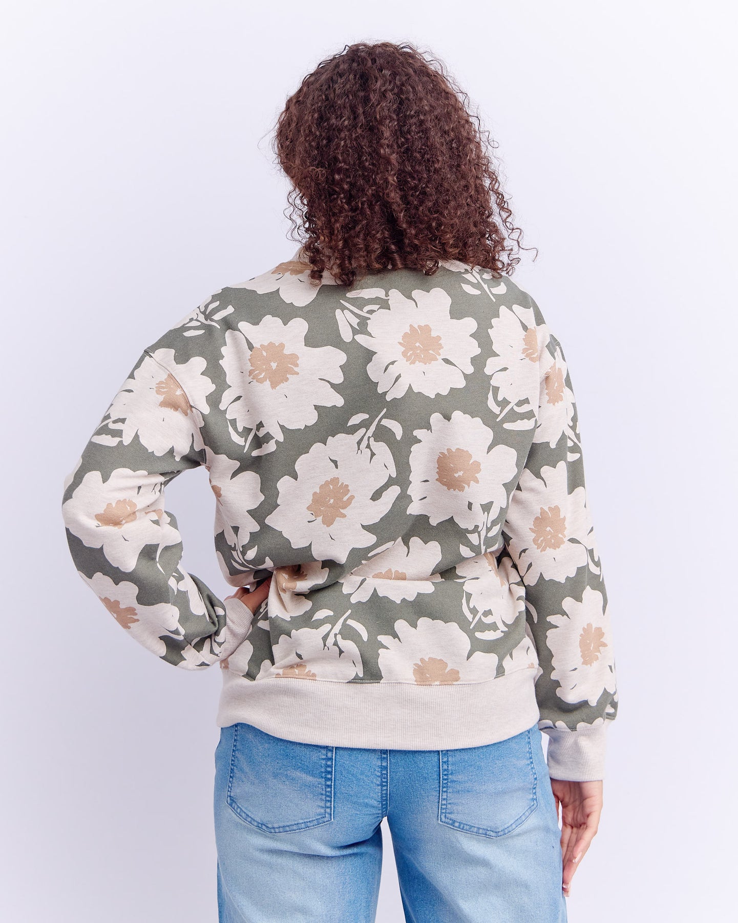 AOP CREW NECK SWEATSHIRT - OLIVE PROTEA - LINEN